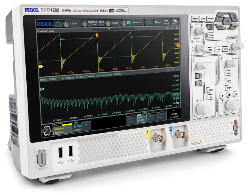 В цифровом осциллографе Rigol DHO1102 установлен большой сенсорный дисплей, что в комбинации с традиционными органами управления делает работу с осциллографом ещё более удобной.
