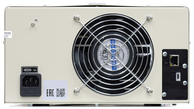 В источнике питания АКТАКОМ APS-3610 реализована схема "интеллектуального" управления вентилятором. При включении источника питания APS-3610 вентилятор охлаждения не включается, как это обычно принято в подобных устройствах. Для управления работой вентилятора на внутреннем радиаторе установлен термодатчик, при нагреве которого включается вентилятор для охлаждения. При снижении температуры вентилятор отключается. Например, под нагрузкой 4,5 А, 40 В вентилятор включается через 5 минут, отключается через 2 минуты.