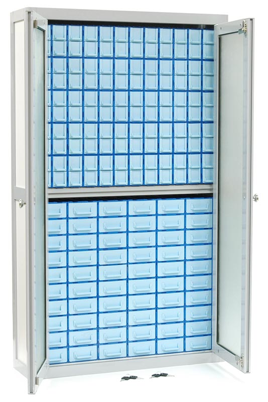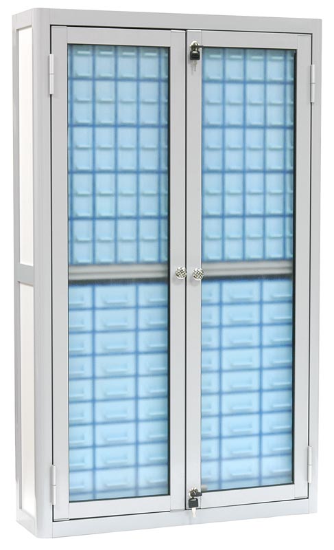 Полка для хранения комплектующих АКТАКОМ АРМ-2271-9 с односторонним размещением ячеек позволяет размещать радиодетали и другие мелкие предметы, укомплектована 3 блоками АТР-9352 (60 ячеек 85х120х40 мм), 3 блоками АТР-9354 (120 ячеек 40х120х40 мм). Полка закрывается двумя стеклянными запираемыми на замки дверцами. Цвет каркаса алюминиевого профиля - серый (RAL 9006), цвет ДСП - белый. Габаритные размеры 66*18*110 см.