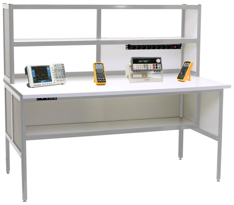 У стола метролога/поверителя АРМ-4510-9 имеются две полки 100x30 см без задней стенки над столешницей, что позволяет удобно расположить измерительные приборы и другое необходимое оборудование. Также есть полка 100х30 см с задней стенкой под столешницей. В стандартной модификации полки фиксированы по высоте. Для электропитания приборов и оборудования предусмотрен блок из 8 розеток с выключателем. Имеются разъемы заземления. Высота 131 см.